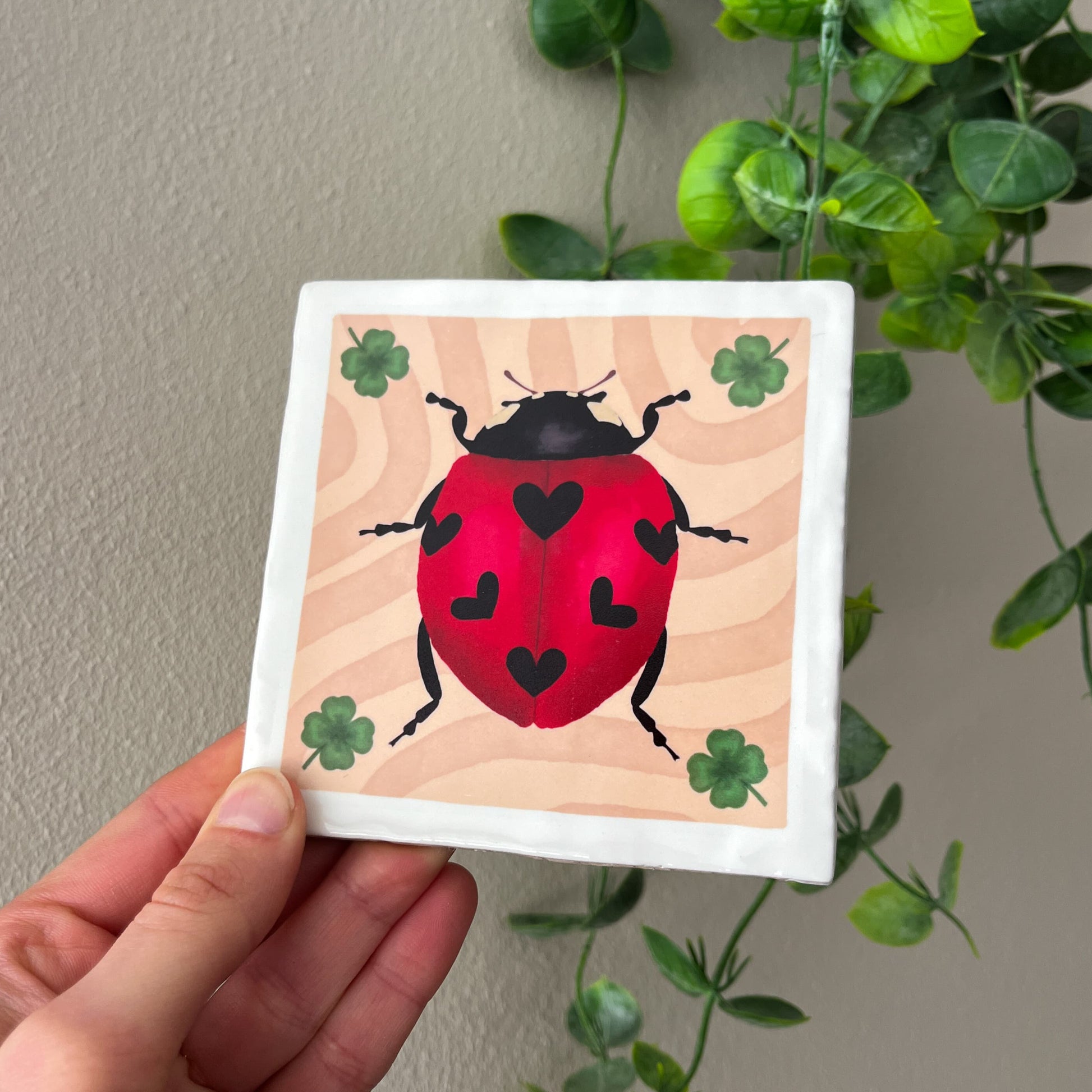 Tegeltje met illustratie - 10x10 cm - Lieveheersbeestje